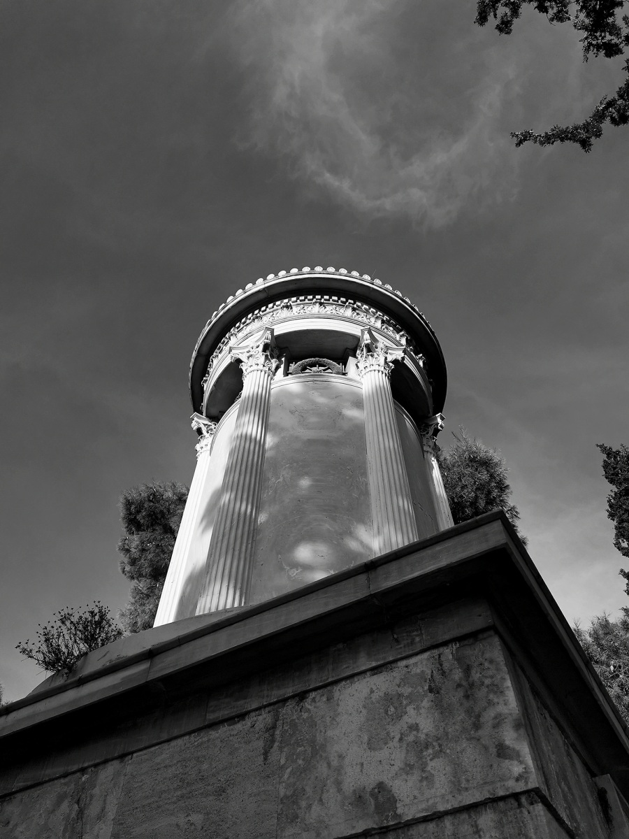 Light shifts through the cypress trees, plants and animals reclaim the paths, and faces carved in marble, amused, watch the living go by.